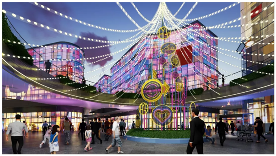 與傳統的商業體不同,弘陽廣場將新零售與主題商業街區相結合,融入藝術、潮流、體驗、購物、互動五大主題元素,針對主題場景、空間體驗,創造性的將藝術街區與生活空間相融合,使得霓虹街景、炫彩涂鴉、網紅打卡、盲盒體驗站、網紅直播間、表白墻等諸多流行元素聚集的藝術街區首次呈現于燕郊。