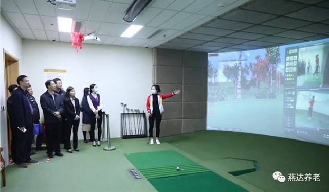 在燕達養(yǎng)護中心,調研組一行參觀考察了賓館式養(yǎng)護區(qū)、家居式養(yǎng)護區(qū)、老年病科、老年大學、書畫室、3D模擬高爾夫球館、健身俱樂部及相關文娛配套設施。