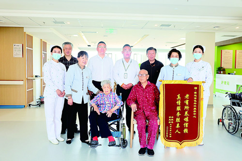 老人家屬送來(lái)錦旗,感謝燕達(dá)養(yǎng)老中心的工作人員。